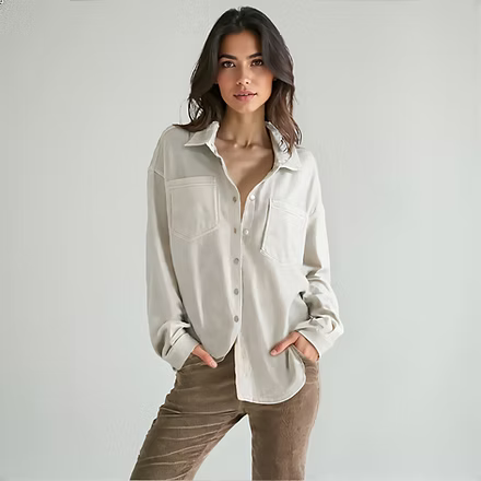 This North River French Terry Shacket is the perfect year round layering piece! In a fantastic neutral shade of oatmeal, this lightweight cotton/poly blend top can be worn on its own or layered as a wardrobe staple.
