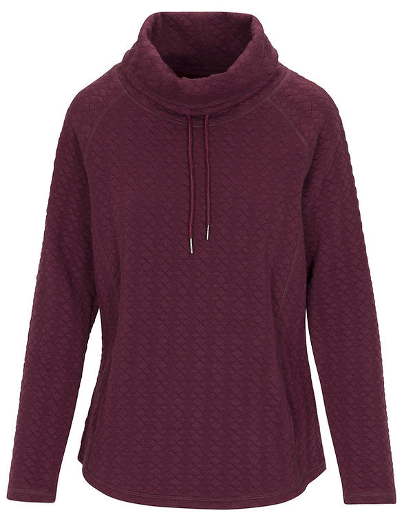 This textured cowl neck is made of a luxurious quilted jacquard fabric, perfect for cuddling up on a chilly Fall or Winter day.